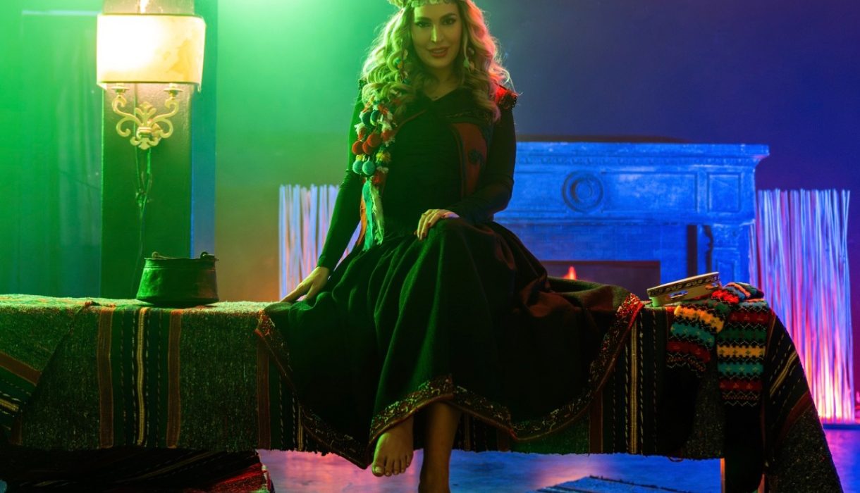 Част от дрехите от народната визия пък са автентични, ръчно изработени, на повече от 100 години. Както във видеото на „Кемене“, така и тук певицата снима чергата, която смята, че й носи късмет, защото е семейна реликва, ръчно тъкана като сватбен чеиз от нейната прабаба за нейната майка.