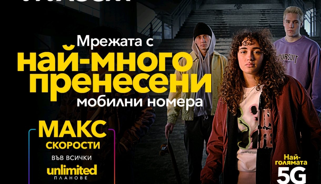 Операторът с най-много пренесени мобилни номера – Vivacom, удължава максималните скорости във всички Unlimited планове до края на февруари. Така всички нови и настоящи клиенти на мобилни планове от Vivacom получават неограничени възможности за невероятно изживяване на макс в най-голямата 5G мрежа в България, която покрива 91% от населението. Unlimited плановете на Vivacom са с най-голямата добавена стойност за клиентите до сега и са създадени, за да направят комуникацията и забавленията още по-достъпни.