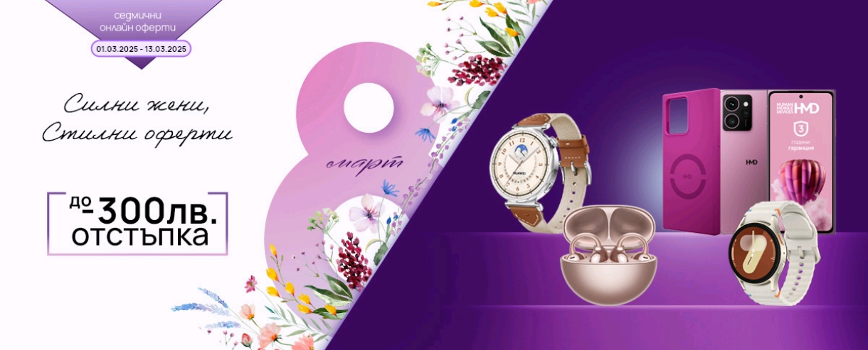Повече информация за смарт устройствата с до 300 лева отстъпка от Vivacom, по случай Международния ден на жената, може да откриете ТУК.