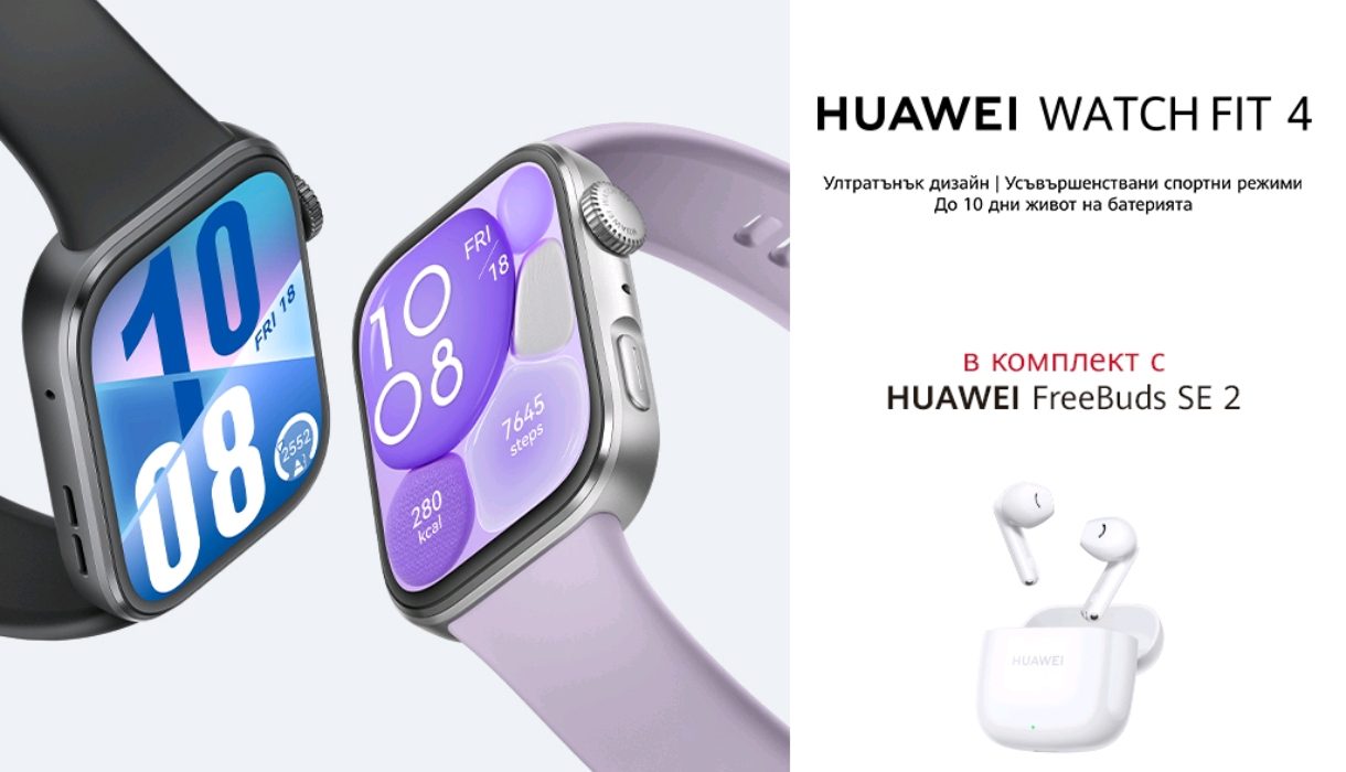 Смарт часовниците от серията Watch Fit 4 имат ултра тънък квадратен дизайн, усъвършенствани спортни режими и подобрена батерия, която издържа до 10 дни.