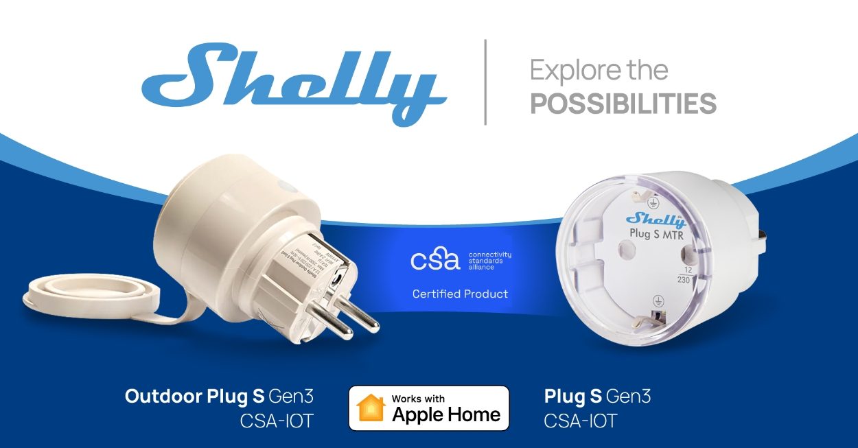 Две устройства на Shelly Group – Shelly Plug S Gen 3 и Shelly Outdoor Plug S Gen 3 – са официално сертифицирани по програмата „Works with Apple Home“. Сертификацията потвърждава, че продуктите могат да работят в екосистемата на Apple и покриват Matter стандартите за сигурност, съвместимост и потребителско изживяване.