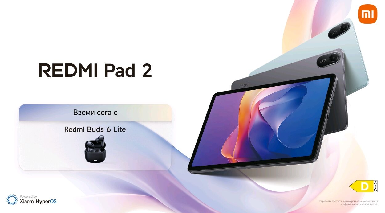 Xiaomi Corporation („Xiaomi“ или „Групата“), компания за потребителска електроника и интелигентно производство, в чиято основа са смартфоните и смарт хардуер, свързани с платформа за интернет на нещата („IoT“), днес представи Redmi Pad 2 и неговия 4G вариант – таблети, предназначени да предоставят развлечение и подобрени функции на по-широка аудитория. С дисплей с висока разделителна способност, стабилен живот на батерията, мощна производителност и с най-новата система Xiaomi HyperOS 2, серията Redmi Pad 2 осигурява завладяващо изживяване за ежедневно забавление.