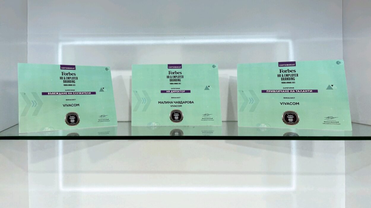 Vivacom спечели признание в 3 ключови категории на Forbes HR & Employer Branding Awards 2025 – второ място в категория „Въвеждане на служители“, трето място в категория „Привличане на таланти“ и финалист в категория „Развитие на служители“. Отличията са резултат от цялостната стратегия на телекома за поставяне на хората в центъра на своето устойчиво развитие и за изграждането на ангажираща работна среда.