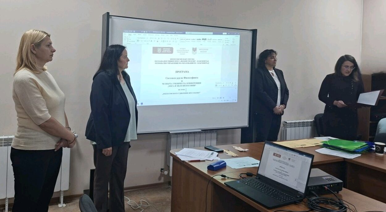 Приветствие към участниците поднесе заместник-ректорът доц. д-р Петрана Стойкова, която подчерта, че философията е не само наука, но и форма на обществено съзнание, както и своеобразен път към личностно израстване и отговорно гражданство.
