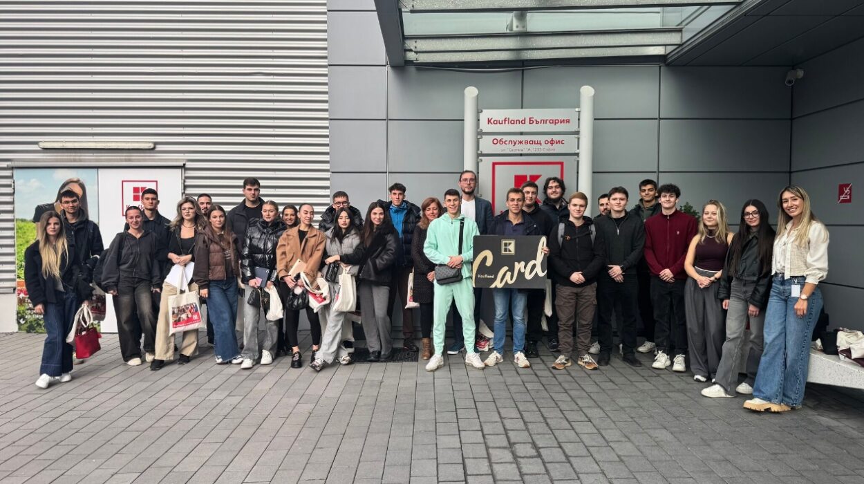 Виолина Хаджипопова, старши експерт „Нови проекти и модернизации“ и Петър Пекалиев, ръководител направление „Отдаване под наем“ разказаха за предизвикателствата и динамиката в тяхната работа – от планирането на реновации до управлението на партньорствата с търговци. Студентите видяха как една идея преминава през етапите на оценка, проектиране и реализация, за да се превърне в част от търговската среда на Kaufland.