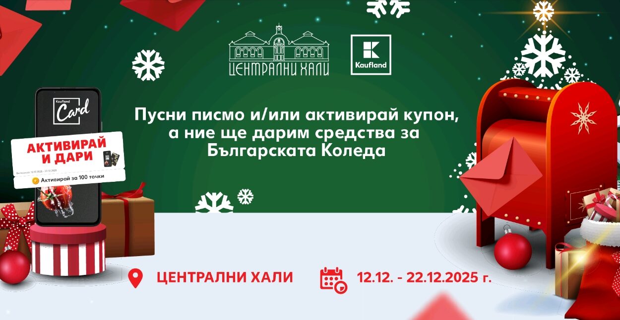 Традиционно Kaufland България призовава всички свои клиенти да превърнат магията на Коледа в реална помощ за деца в нужда. За всяко писмо, пуснато до 22 декември в най-голямата пощенска кутия за коледни желания, разположена на паркинга на Централни хали, компанията ще дарява 0,50 лв./0,26 € за 23-тото издание на благотворителната инициатива „Българската Коледа“.
