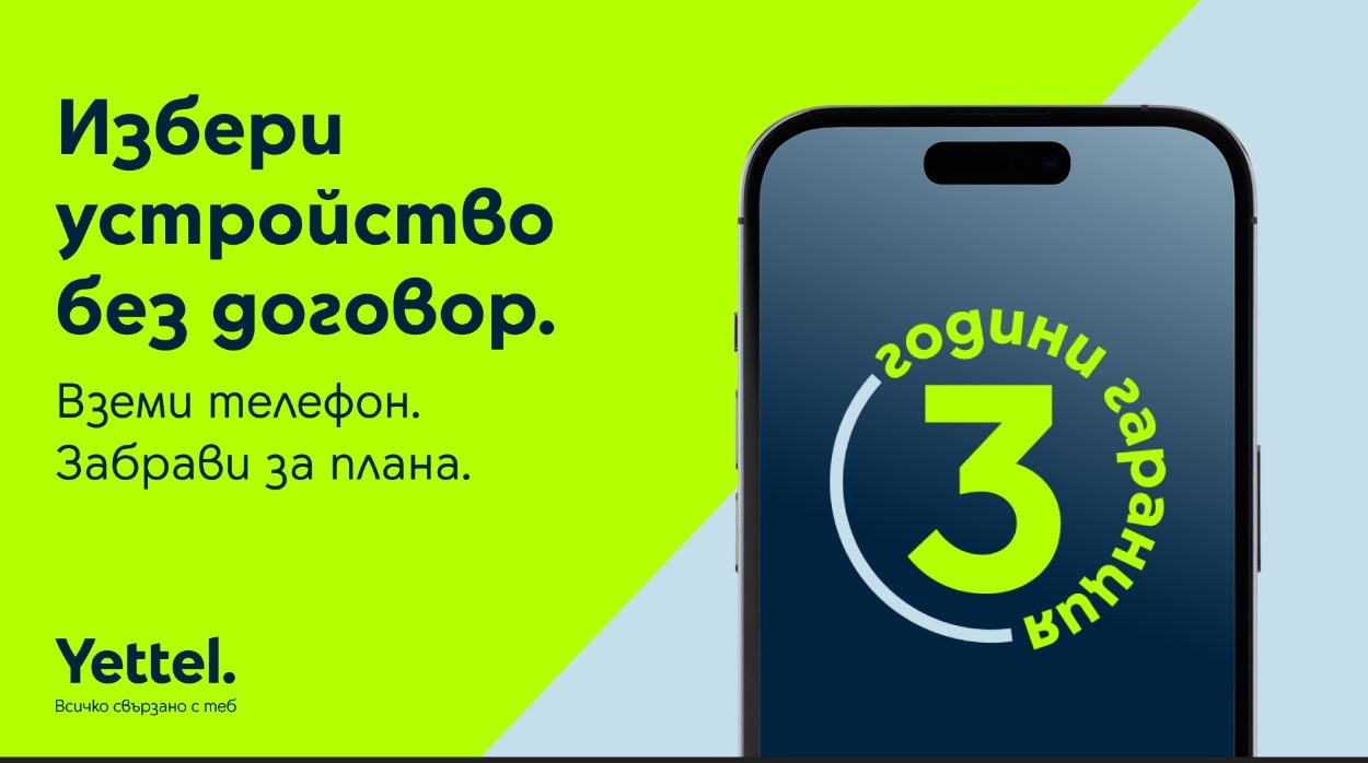 Yettel прави избора на нов смартфон още по-достъпен, като от 1 април 2026 г. въвежда нови, атрактивни цени на над 30 модела устройства при закупуването им без мобилен план към оператора.